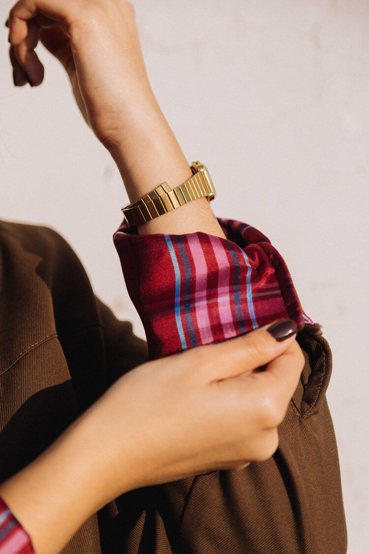Detalles como el forro de puños, cuello y bolsillos en tartán aportan un guiño inesperado al interior de una prenda que celebra la atemporalidad, pensada para acompañarte año tras año y en todas las temporadas.